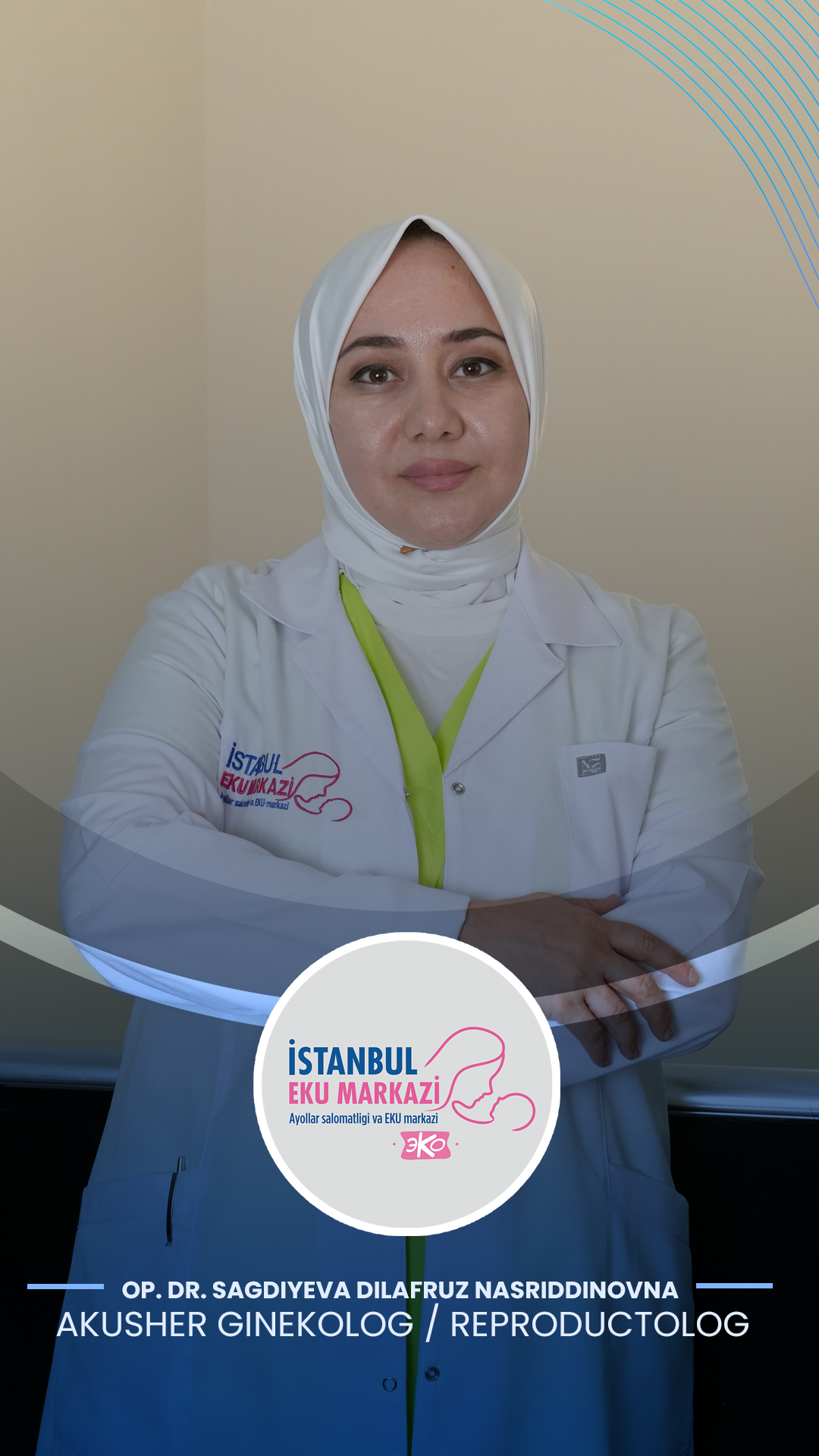 Təhsil Reproduktiv Tibb Mutaxassisi, 2023Sog‘liqni Saqlash Vazirligi Reproduktiv Tibb Mutaxassislik DasturiMaslak Acıbadem Kasalxonasi Tibbiyot Klinikasi, Istanbul, TÜRKİYA2022-2023 Ayollar Kasalliklari va Tug‘ruq Mutaxassisi, 2008Ayollar Kasalliklari va Tug‘ruq Mutaxassisi,2003-2008 Sog‘liqni Saqlash Universiteti,